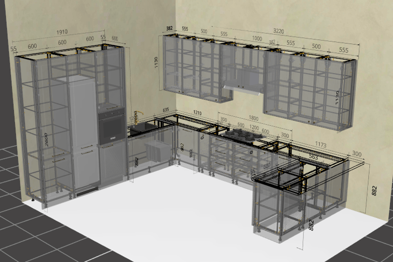 Hochschrank 2600 mm (Kühlschrank/Backofen)