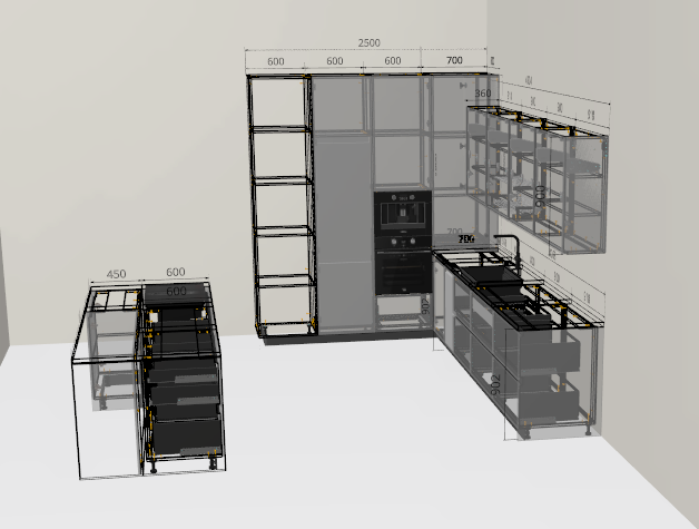 Hochhängende Oberschränke mit LED-Beleuchtung