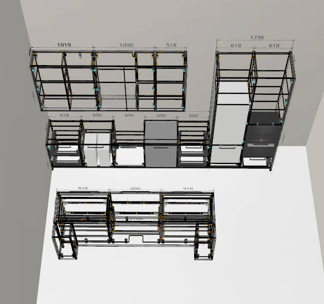 Oberschränke: MDF mit HPL-Beschichtung in Edelstahl gebürstet